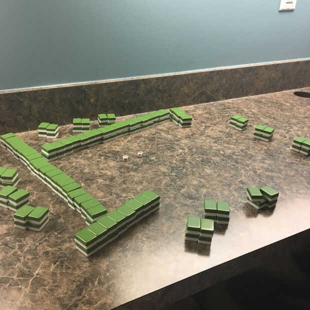 • El motor de arranque lanza el dado otra vez. Entonces contar los números en los dados. Tomar el número y contar el número, a partir de la fila de delante de ti y cuenta cada fila counterclock-sabio. Será el lugar para que usted pueda empezar a recoger las tarjetas. (Esta regla es sólo si la suma de los dos dados es un número par. Si la suma de los dos dados es un número impar, siempre comience con la fila ante el jugador sentado frente a usted. )