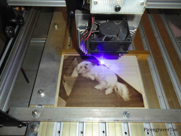 Para TTL (no variada) modulación láser diodo los conductores, la dirección del eje Z Pin #7 puede utilizarse para el láser diodo con Z y Z-abajo se mueve en la Gcode, If que $3 = en grbl 9g está ajustado correctamente. La dirección negativa de Z en la Gcode hará Pin 7 ir alto (5v) gire láser diodo dirección positiva de y a Z haga Pin 7 bajo (0v) y gire el láser diodo apagado. Esto pulsará el láser ON y OFF creando la alusión de blanco y negro de sombras con Gcode generado a partir de la imagen Dithered.