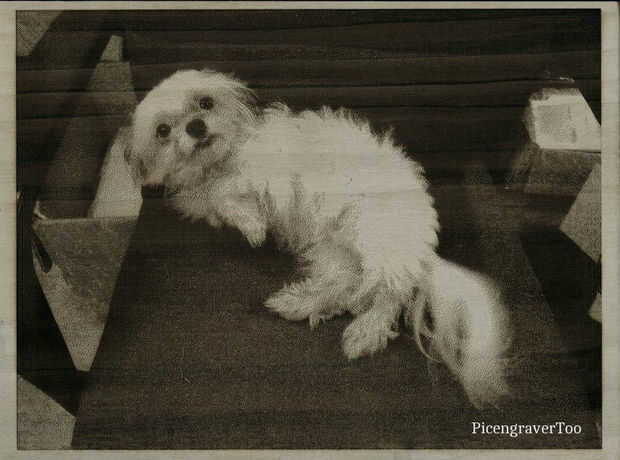 Trajimos esta imagen en PicLaser Lite para generar el código, pero esto requiere un poco diversa profundidad mínima y máxima para el eje Z. Sólo queremos el láser a ON en las áreas de punto negro y OFF en las zonas blancas, así que un Z-.0015 "(.0381mm) max es utilizado en esta ocasión. El codificador de eje magnético MA3 va de 0v a 5v y volver a 0v. Invertir sentido de giro cambia esto, así que es necesario una configuración diferente grbl para TTL por lo que va a ir desde 0v en la Z.0000 de la Gcode para blanco y luego el Z-.0015 (.0381mm) irá a plena potencia con 5v para el negro. Como se ejecuta el código pulsos del laser ON y OFF para grabar la imagen de esta manera.