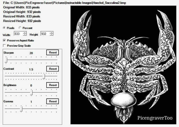 No utilizamos una imagen de mapa de profundidad en esta prueba, pero hemos encontrado algo bastante cercanos en Wikimedia Commons que trabajó para este experimento porque queríamos sombra también. Hicimos algunos de edición a la imagen primero con PicEdit Lite y luego utilizar Photo-Paint luego antes de generar la Gcode.