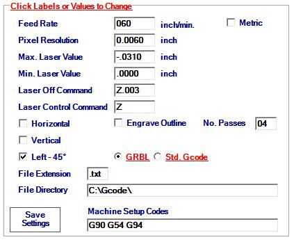 Paso 9 se utilizó PicLaser Lite con una tasa de alimentación de 60IPM (1524mm/m), profundidad mínima de Z.000 y una profundidad máxima de Z-.0255 (.65mm) con un 30% "Cambio de tarifas de alimentación". En este ensayo queremos potencia máxima absoluta que fuera nuestro Laser diodo, por lo que se utilizó una profundidad máxima de Z-.031 (.787mm) en cambio esta vez.