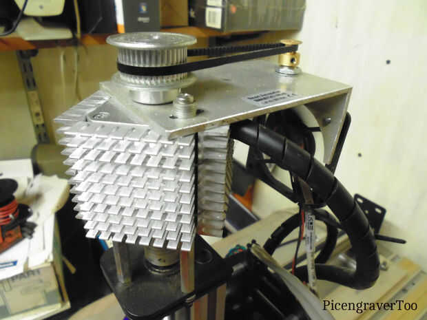 Un soporte de aluminio tuvieron que ser hechas para montar el encoder y el paso a paso de enfriamiento del ventilador. Sólo utilizamos un trozo de. 125"(3.17 mm) espesor aluminio ángulo 2.500" (63.5 mm) de ancho y cortar un lado 1,625"(41.27 mm) de largo y el otro lado 4,00" (101,6 mm) de largo. Puesto que el MA3 es un codificador de tipo magnético, teníamos que mantener una distancia de centro a centro de eje de 3,00"(76,2 mm) para evitar cualquier interferencia magnética del motor paso a paso. Si se usó un motor paso a paso 23 nema, esta distancia de centro a centro tendría que aumentarse.