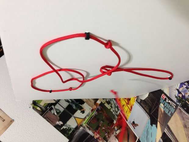 1. Haz tus pequeños ganchos y uno de ellos poner directamente sobre la máquina CNC y la otra en algún lugar donde puede estar vinculada mientras está. Elegí una pared a la derecha, si usted mira de cerca se puede ver cómo la cuerda tiene un nudo que sólo se queda en el gancho. Tengo la colocación para el nudo después de todos estos pasos fueron realizados.