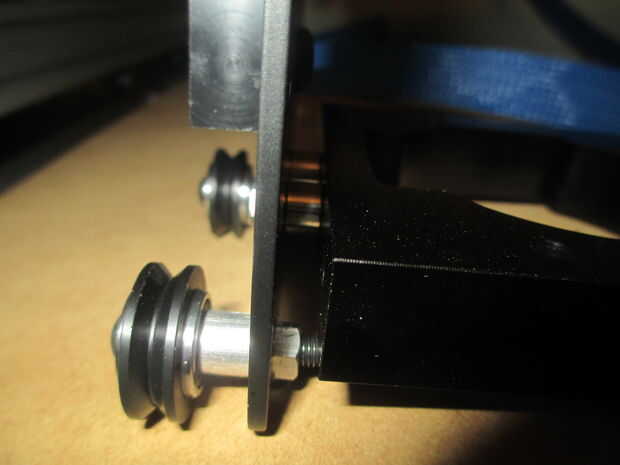 He visto varias soluciones en el foro pero este es por lejos el mejor. Mi original era bastante fácil pero tenía algunas desventajas. Utilicé aluminio repuesto espacios y tornillos más largos para mover el soporte de montaje del carro. Este costo me una pequeña cantidad de espacio de trabajo valioso y también más torsión de la fuerza en la MakerSlide del eje X.