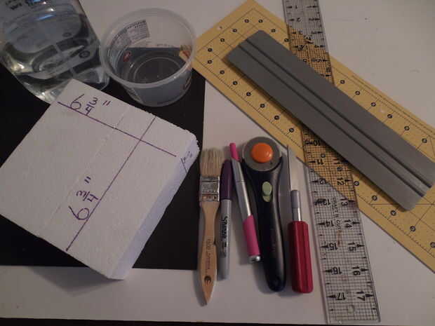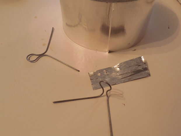 - metal perchas o conseguir creativo, algo para poner en la parte trasera para colgar de.