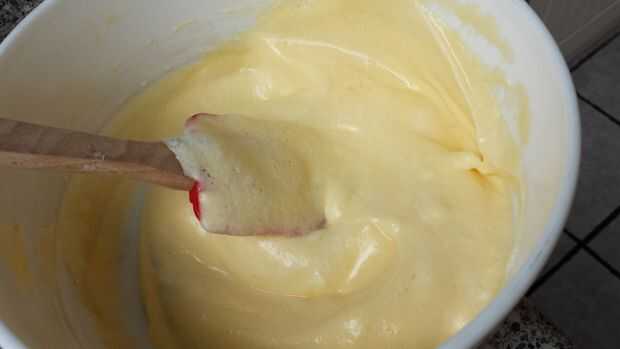 It's really easy. Separe los huevos y poner las claras en un bol y las yemas en otro recipiente. Batir las claras con la mitad del azúcar hasta que se puede voltear el tazón de fuente y no caerse. Recuerde, usted no puede batir em si sus tazones de fuente y mezclador son grasas! Mezclar la otra mitad del azúcar con las yemas. Ahora agregue lentamente las claras batidas a las yemas. Tener mucho cuidado, porque usted no quiere perder más esponjoso! A continuación agregue lentamente la harina. Solo que cuidado! Mezclar bien y verter en forma de pastel! Hornear en horno precalentado a unos 150 grados C (300 grados F) durante unos 20-25 minutos y luego dejar enfriar.