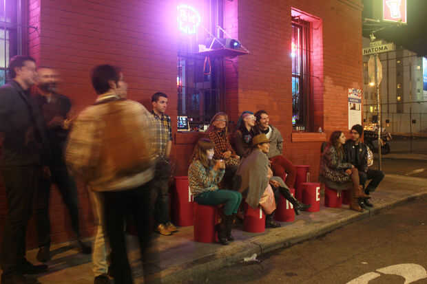Si usted quiere lanzar SharedCinema durante las horas diurnas, puede olvidarse sobre el uso de un proyector. Usted probablemente no tiene acceso a uno que es lo suficientemente brillante. Si usted tiene acceso a una pantalla LCD o LED al aire libre que podría ser una gran alternativa. Puesto que hemos querido proyectar en un callejón, decidimos lanzar SharedCinema al atardecer durante una noche de otoño. Hay 3 factores clave para la proyección al aire libre: tiro de lúmenes del proyector, distancia (proyector a la pantalla) y la reflectividad de la superficie. Gracias a la Fundación de zona gris de las artes, tuvimos la suerte de tener acceso a un Proxima DP9290 que tiene brillante 3500 lumen máximo. Probablemente necesita por lo menos 2000 lúmenes para proyectar desde 20' + con las luces de ambiente de un entorno urbano. Nosotros también estábamos proyectando a través de un espacio relativamente estrecho 24' que A) hizo un espacio íntimo teatro escala B) estaba dentro de la distancia de tiro de nuestro proyector. Estábamos proyectando un ancho de pantalla de unos 15'5 "ancho. Por último, la pared de TechShop en que estábamos proyectando era un grisáceo de hormigón en bruto. Usted quiere tan suave y blanca (y reflexivo, si usted puede encontrar) de la superficie como sea posible. Usted puede optar por una pintura de proyector especial, pero es muy costoso. Por último, probar y en 40' de cualquier alumbrado público. Que matan tu imagen.