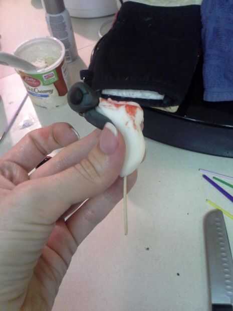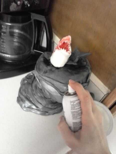 Inserte palillos de dientes en sus más pequeños tiburones de fondant o colas y ésos en el tornado insertar en lugares al azar.