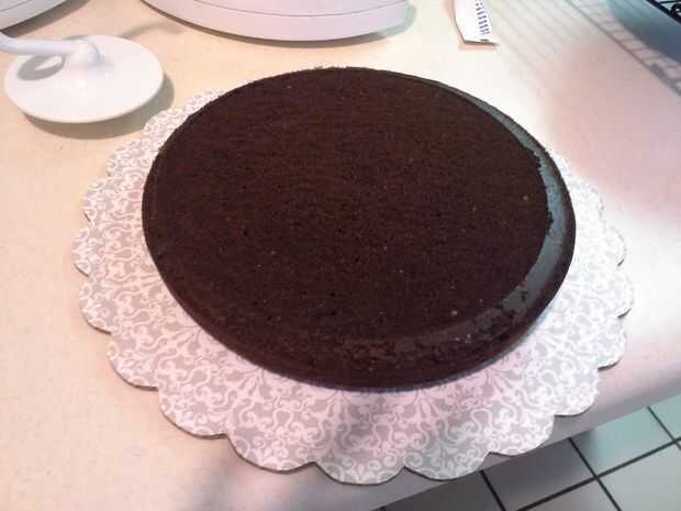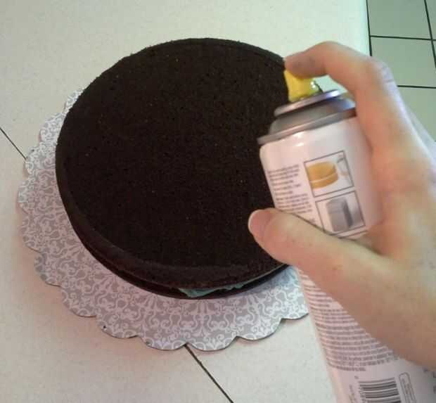 Una vez que sus tortas son completamente frío, una capa en un tablero de la torta o la bandeja de la porción del tirón. Extender una cucharada generosa de glaseado sobre la torta, luego cubra con la segunda capa de torta. En este punto usted puede ligeramente helada el pastel para crear una capa de migas, o rociar el pastel con un spray de miga (Wilton hace uno del aceite de coco) y guardar en la nevera. O miga, capa que mamones.