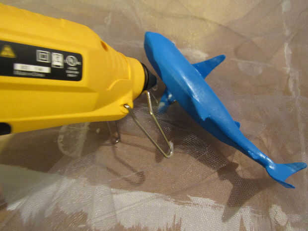 Asegúrese de que la separó de la superficie que está trabajando de tul. No quiero pegar sólo el tiburón al Banco de trabajo! Tener agua fría mano que sin duda se quemará a sí mismo en algún momento aquí...