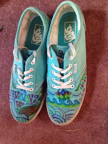 Se necesita:1. queja zapatos2. pluma rotulador3. frotar Alcohol4. esponjaPaso 1: Deje de hacerlo!1. pintar los zapatos con bolígrafo sharpie como su estilo.2. que un alcohol de frotamiento en él.3. deje que se seque.O puedes ver mi video en https://w