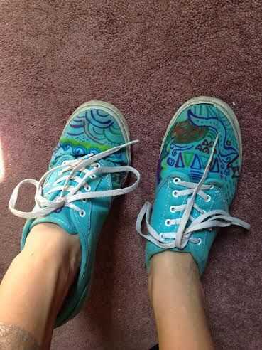 Se necesita:1. queja zapatos2. pluma rotulador3. frotar Alcohol4. esponjaPaso 1: Deje de hacerlo!1. pintar los zapatos con bolígrafo sharpie como su estilo.2. que un alcohol de frotamiento en él.3. deje que se seque.O puedes ver mi video en https://w