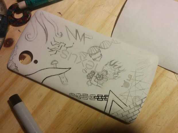Dibujante en cosas que no son de papel es un poco un comodín. El tacto la parte posterior de la blanco Nexus 5 es genial, pero el lápiz se puede borrar solo con el dedo (y, si usted accidentalmente cubrirlo con la mano mientras trabaja). Para los teléfonos con superficies como la Nexus 5, es una buena idea utilizar una hoja de plástico transparente en la mano mientras trabaja. Esta hoja puede venir de cualquier cosa, siempre que no sea abrasivo. Papel también funciona, pero el plástico transparente facilita ver lo que estás haciendo.