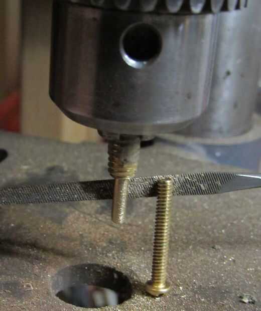 • Coloque el tornillo en un mandril y un archivo abajo 1/2" a cada lado del tornillo para que sea ligeramente más ancha que un tornillo #6-32.