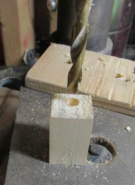 1. Perforar un agujero un poco más estrecho que un tornillo de 1/4"-20 en un bloque de madera blanda.