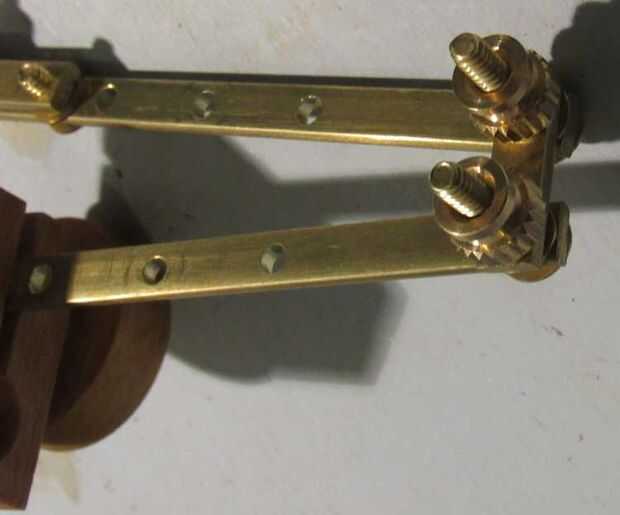 El conjunto superior es una barra de latón simple con dos agujeros flojos. Tuercas de dedo se utilizan para permitir el ajuste de la Asamblea superior como los cambios de radio.