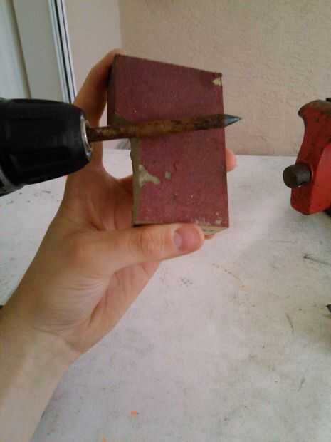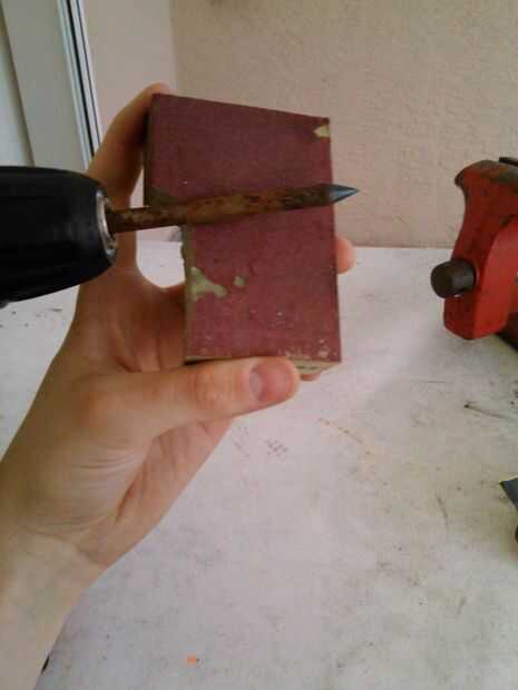 Usando una esponja de lija o papel de lija, lijar la punta brillante y limpiar el metal. Por favor, intentar No apuñalar a sí mismo sin embargo.