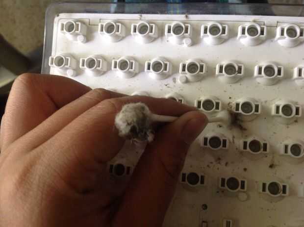 Limpiar la junta con Q-Tips, removedor de polvo (se puede) y Windex en un cojín suave para limpiar entre y alrededor de partes del teclado.