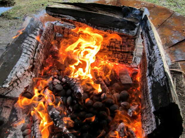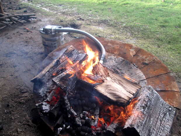 Decidí hacerlo de la forma salvaje: algunas pastillas de carbón, un destructor de polvo transformada y un día muy ventoso. La configuración de todo genera suficiente calor para quemar un túnel a China en nuestro patio trasero y que el acero hojas rojo caliente - fuego del túnel, usted sabe. No importa cómo lo haces, es el único resultado que necesita.