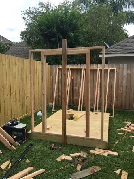 Ya que yo estaba haciendo todo el trabajo por mí mismo, solía viejo 2 × 4 para levantar las paredes mientras que coloque uno al otro. Como veis a continuación que construí puerta apertura en cabecera de 3 pies ancho y construido usando dos 2 × 4 intercala con el pedazo de osb en el medio para que sea tan grueso como de 2 × 4 del perno prisionero.