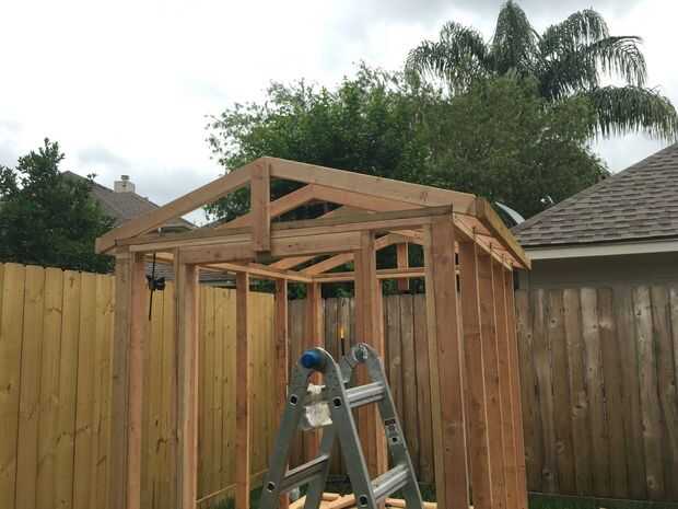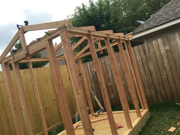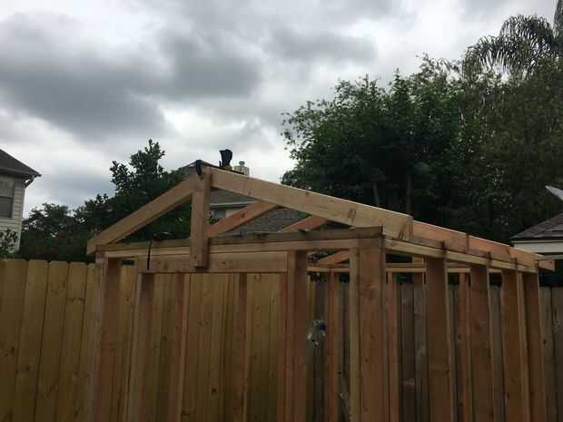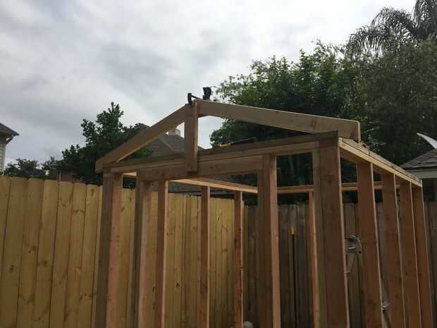 Comenzaron a añadir cerchas, y utilicé pedazo de 2 × 4 para mantener primera armadura final en lugar de temporal.