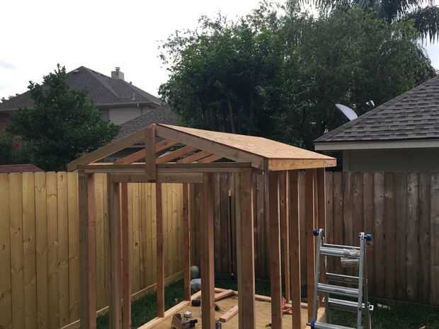Dado que cada lado de un techo es no 4 pies de ancho, tuve que cortar cada techo panel largo maneras de que se ajuste. Además, mi techo tiene una cresta lo fue 1. Apertura se dejará en la cima de cada lado. Paneles de la azotea fueron cortados en 44 1/2 pulg. Ancho y 8 pies de largo. Entonces usé tornillos para fijarlo a las cerchas. Esto también le ayuda a Plaza de las cerchas del techo.