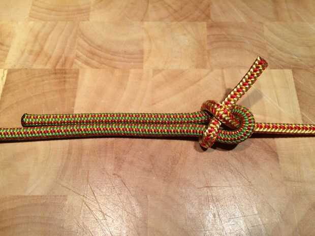 La curva de la hoja se recomienda para unir dos cuerdas de tamaño desigual. La cuerda más gruesa debe utilizarse para el lazo simple. Funciona igualmente bien si las cuerdas son del mismo tamaño.