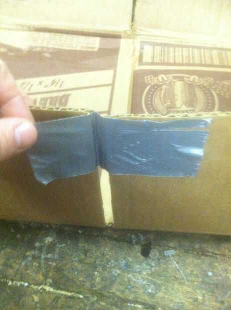 Pato al otro lado de la caja de la cinta y la cinta se unen entre los.