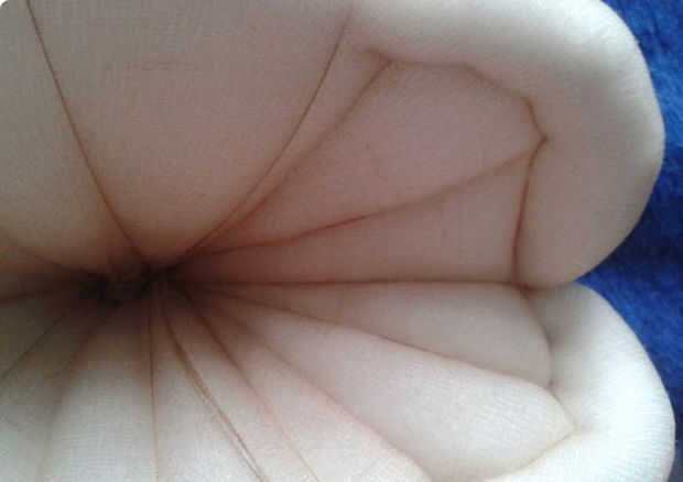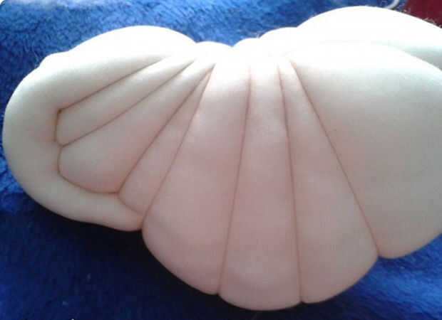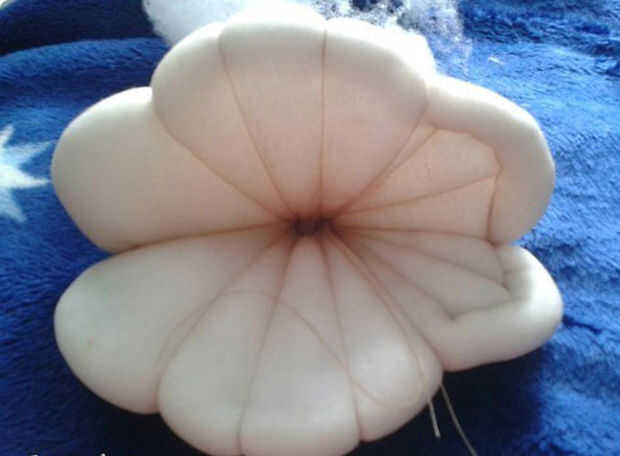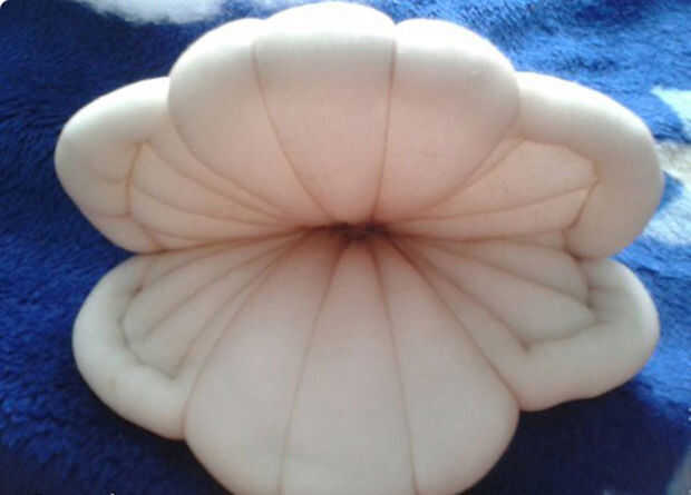 Para obtener bordes simétricos, puntada con el hilo y atar las puntadas un poco. Tener mucho cuidado, porque la media de nylon es muy fácil de romper. Eso es todo! Su linda concha ya está listo. Usted puede darle cualquier forma que te gusta.
