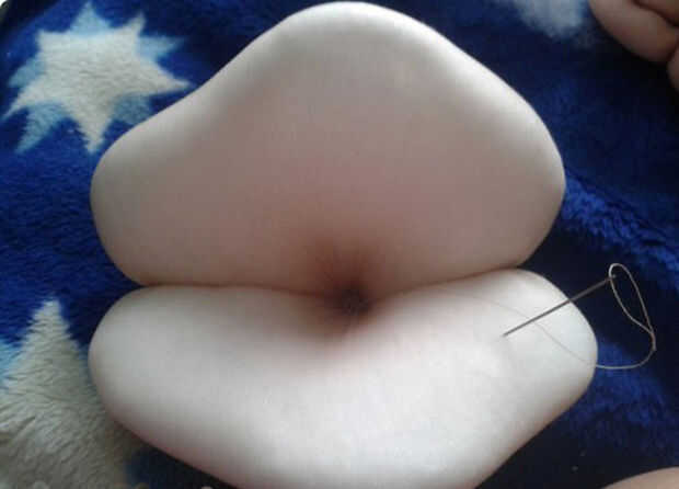 Para dar a la shell la forma original, coser en el centro de la base. No te olvides de ocultar la parte restante de la media en el centro.