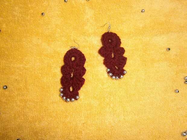 Las cuentas dan un contraste al pendiente de la cáscara del ganchillo.