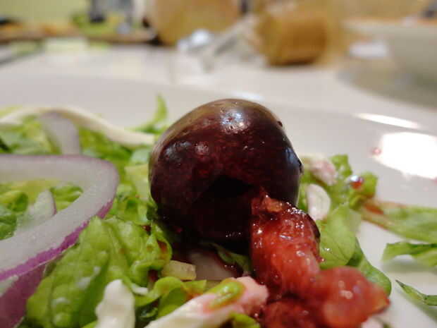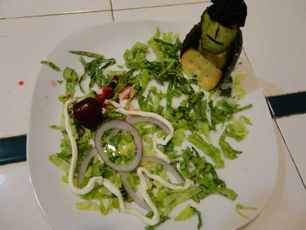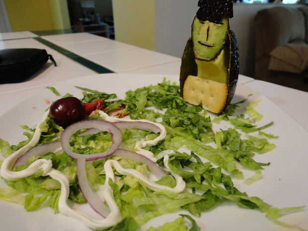 Ahora que termina su ensalada de misterio, lucir! Podría tenerlo como centro de mesa para una comida y turnarse para describir la muerte misteriosamente deliciosa de Mr. Cherry Man o solo admirar su artesanía y borrar todos los signos del asesinato por empujar en la garganta con un tenedor. No importa lo que usted elija, espero divertí haciendo esta interesante ensalada, y ha inspirado para sus propias creaciones!