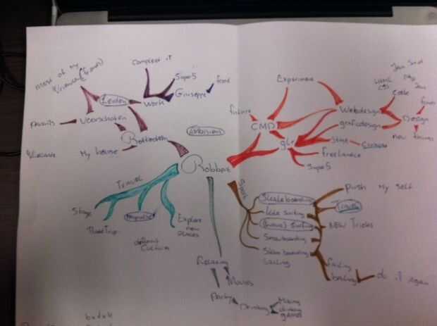 Primer paso fue hacer un mindmap sobre mí. Aquí he encontrado 5 artículos que yo sería tener en cuenta durante el diseño. Fueron los 5 elementos palabra con: tablero de viaje, Curazao, deportes, impulsiva y Leiden (ciudad de Holanda).