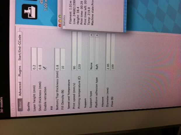 El último paso fue imprimir la pieza del pecho en las fotos se puede ver la configuración que he utilizado.