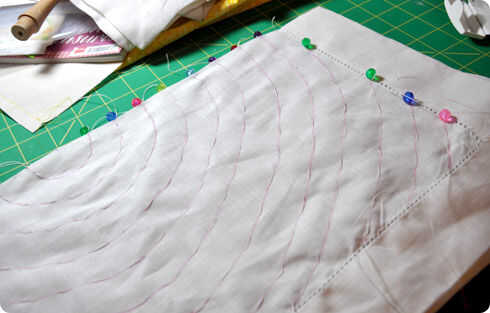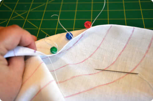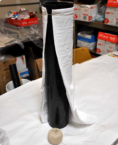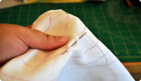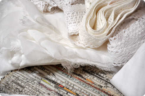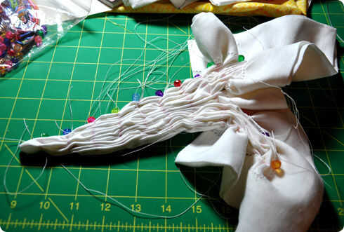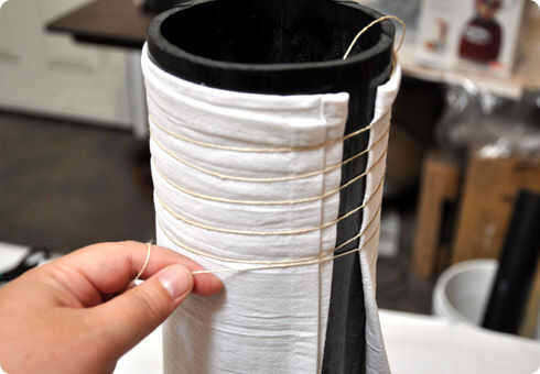 Luego atar la tela y otros espacios en blanco. Utilizamos varias técnicas diferentes: