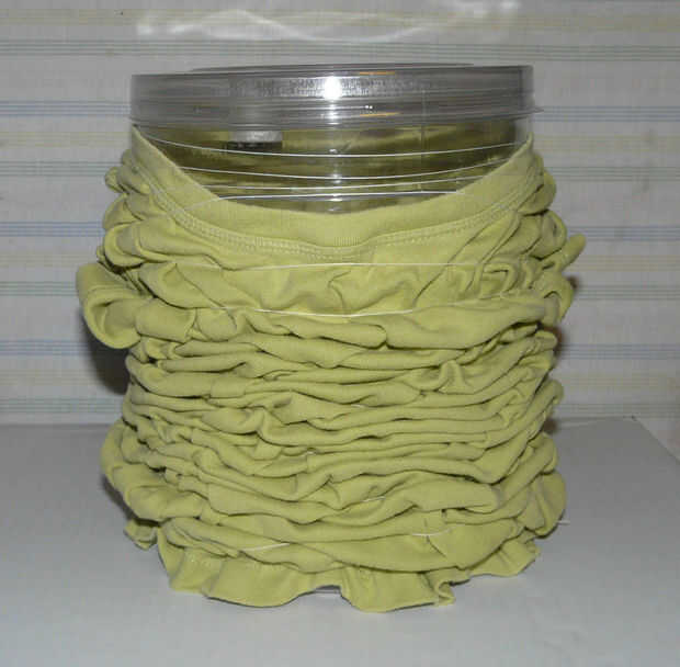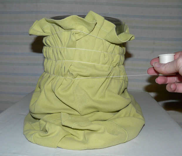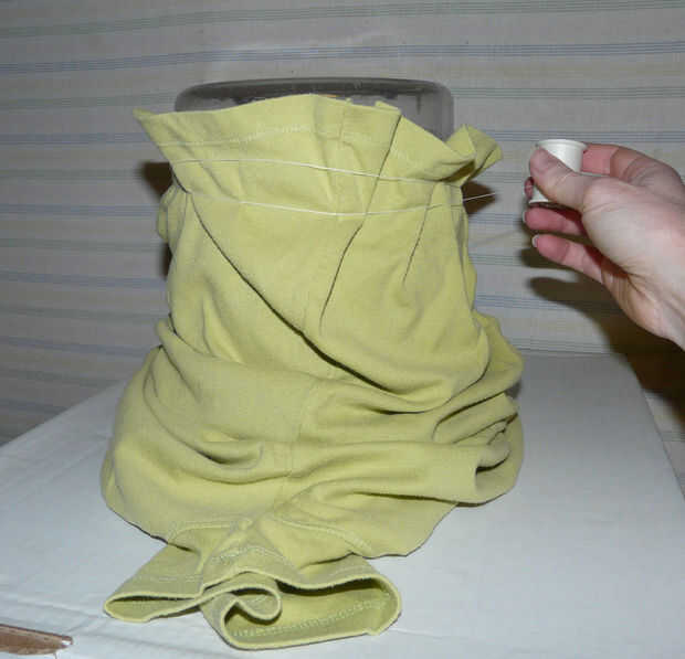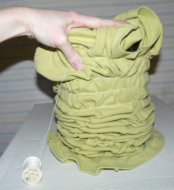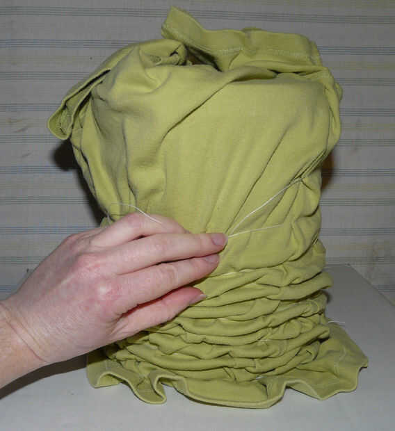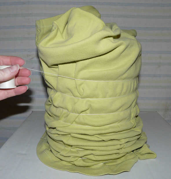 Cuando te quedas sin habitación para envolver la cadena, deslice la parte que ya has envuelto abajo al cubo (hacia el dobladillo) y luego mantener la envoltura. La camisa se arruga y los abrigos superponen, pero es cómo usted quisiera que mirara.