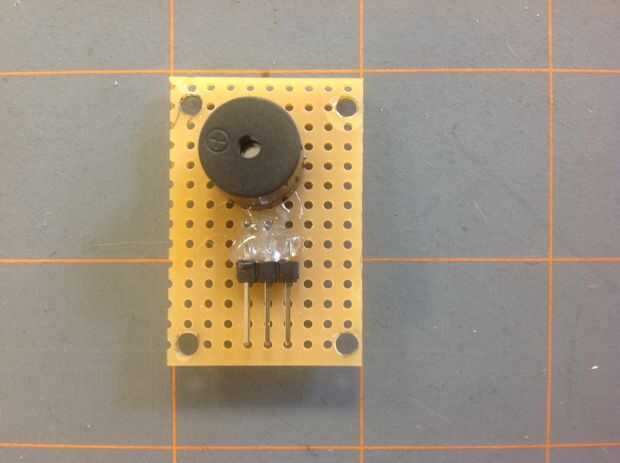 Pegamento caliente los componentes en lugar como se muestra en la figura 6-2. Tome un cable blanco y el positivo del zumbador con el conector de señal de la soldadura y para soldar el cable negativo del zumbador con el conector de tierra utilizar un cable negro. El perno de tensión quedo desconectado.