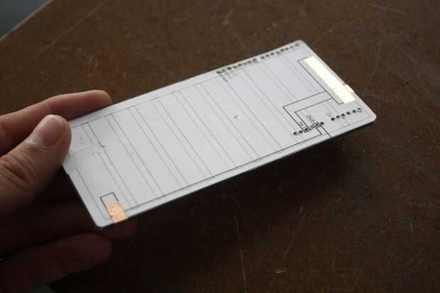 La cinta de cobre se debe conectar la parte inferior de la primera solette (esto es el (+) de arreglo serie de solettes) con el pin de 5V, y luego un segundo pedazo de cinta conecta la parte inferior de la última solette (esto es el (-) de la organización de la serie) con uno o dos de los pines GND de tu cabezal de alimentación.