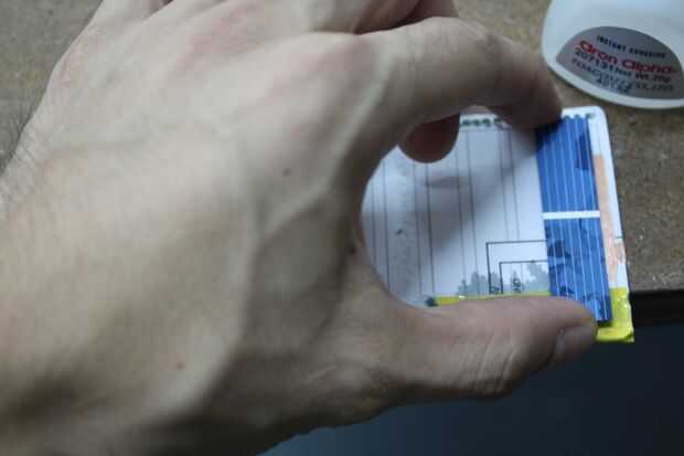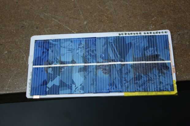 Este paso es la clave: combinar solettes en serie con una técnica de súper pegamento escalonar. Salidas de cada solette o cualquier pedazo de mono o policristalino silicio PV de hecho, alrededor de 0, 5 - 0.6VDC, que no es suficiente voltaje para hacer muchas cosas útiles. Así que, tenemos bastantes de estos solettes combinan en serie para que suman sus salidas de voltaje. En el caso de este escudo Solar, tenemos que llegar a entre 3V - 5.5V. Disparé de 5.5V, para asegurar que el escudo podría operar en condiciones de luz baja.