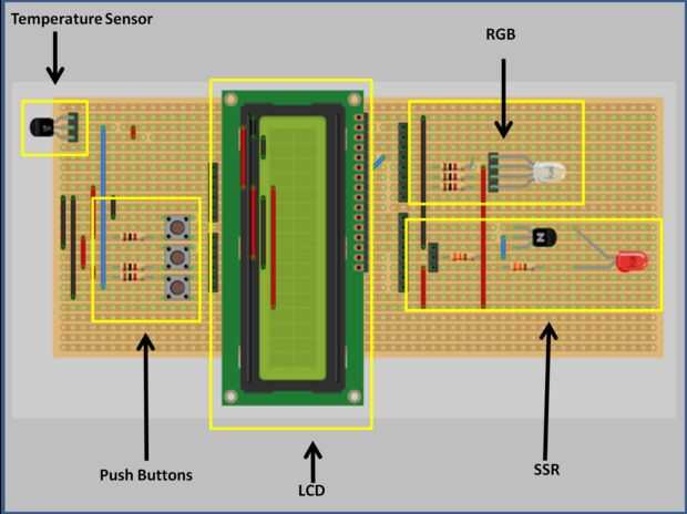 Solde los componentes siguientes en un Arduino Sousvide escudo como se muestra: