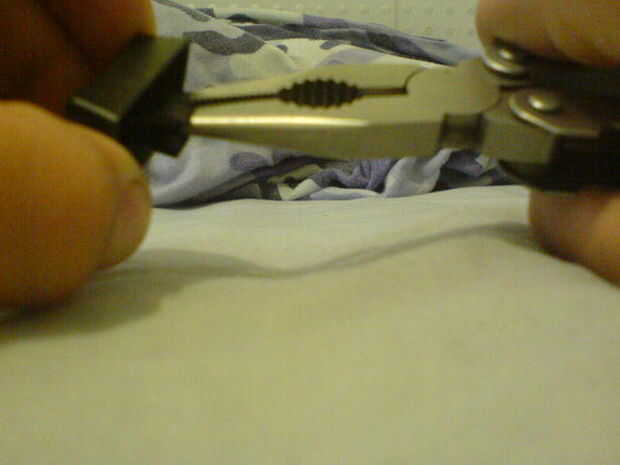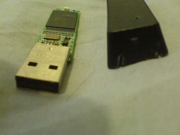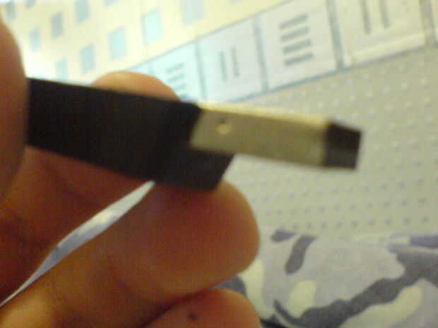 Una vez que hayas hecho esto tome un cuchillo y quitar una sección de un extremo de la llave que es del mismo tamaño que el conector usb.