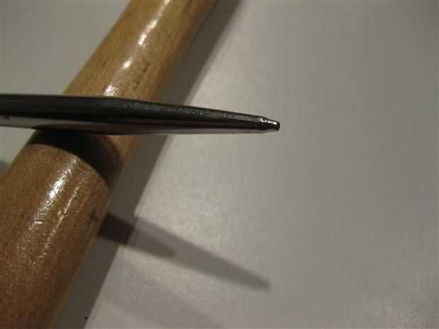 Nota: tomé un punzón estándar y baja el lado cónico hacia el extremo del contacto. El clavo hoyuelo en la cara, junto con el pulido de la forma cónica del lado crea un buen sacador de agujero. Cuando compré el punzón, vino en un conjunto de tres tamaños diferentes. Usé el punzón de 3/32.