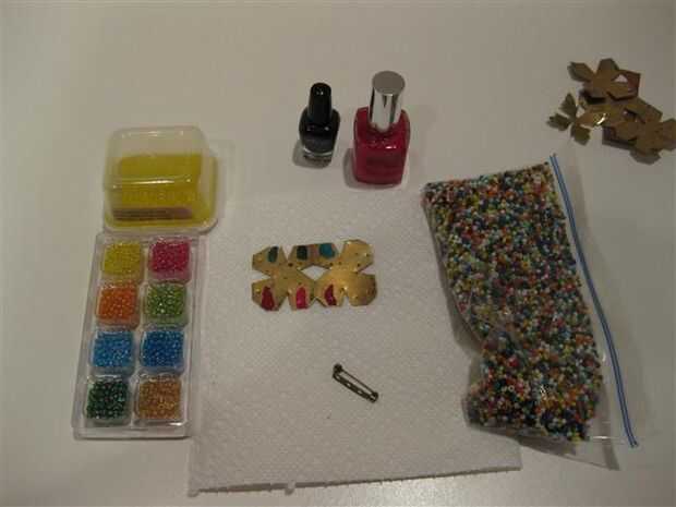 Hice algunas pruebas de verdes y rojos en un pedazo de la acción de cuña de latón. Elegí lo que me pareció una buena combinación de verde y rojo. También consideré la coincidencia de los granos de cristal amarillo que iba a utilizar.