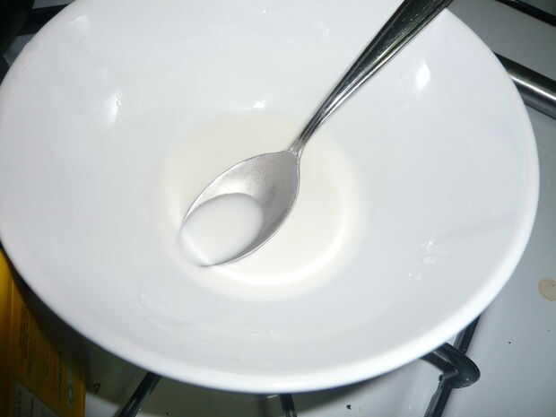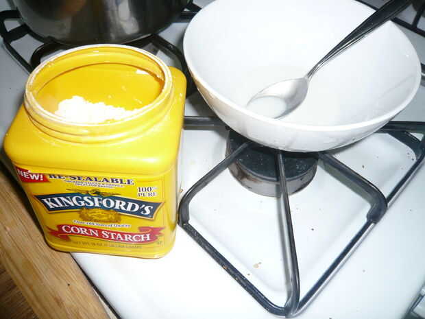 Espesor con harina (o maicena) mezclado con una pasta con agua fría. Mezclar en la pasta y cocer a fuego lento durante 10 minutos.