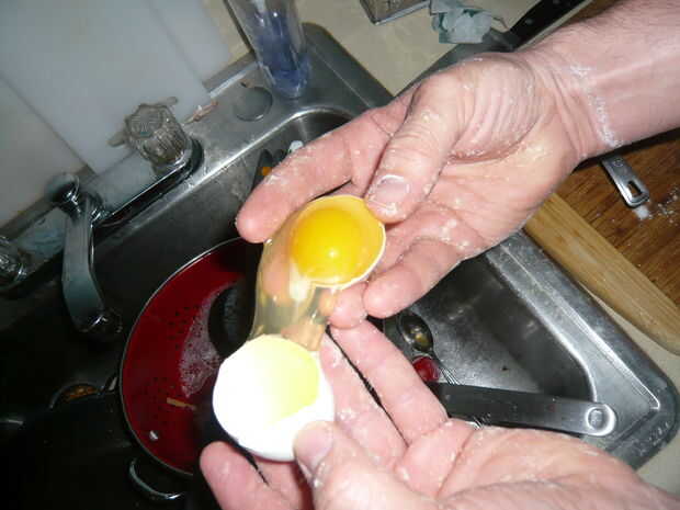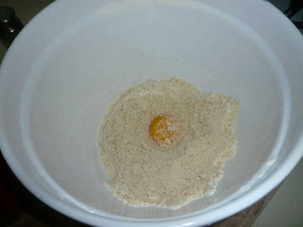 Añadir agua a la harina hasta que haga una masa que puede estirar con un rodillo.
