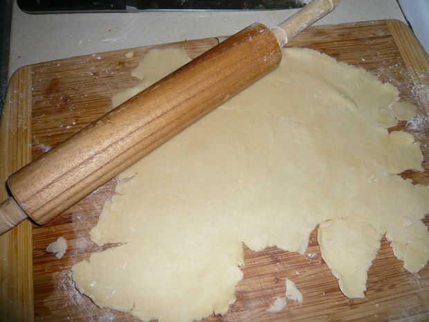 El Banco de la harina y no rodar demasiado de lo contrario la masa será rígido y galletas como.  Coloque el fondo en el plato de pastel.