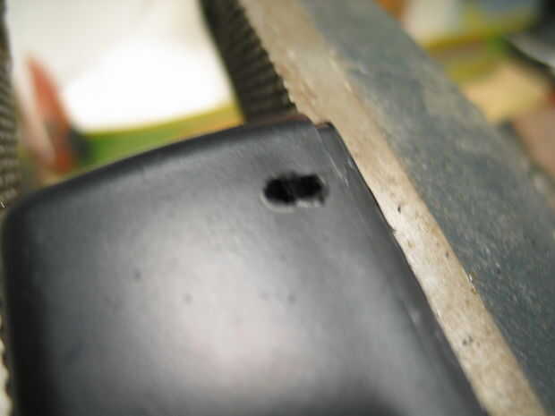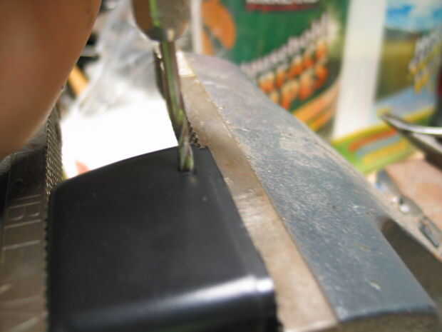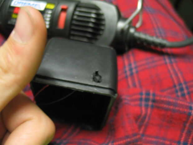 En primer lugar, usted tendrá que localizar un buen lugar para poner el botón. entonces usted necesitará tomar la broca para el dremel y orificio de allí que es del tamaño adecuado. luego deberás pegarla con pegamento caliente. (grabó justo allí, y ahora tengo que tomar aparte y rehacer esa parte)