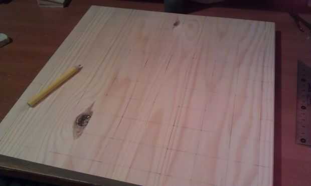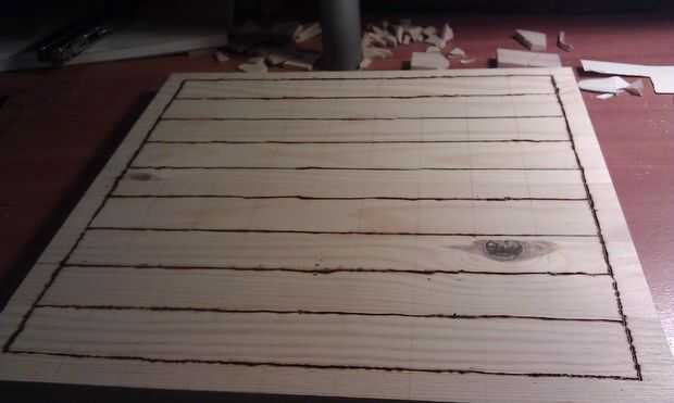 Como se puede leer en artículo de Wikipedia sobre shogi, juntas son principalmente rectángulos - tableros cuadrados no son muy comunes. Sin embargo, decidí hacer un tablero cuadrado con campos cuadrados de 3 cm x 3 cm. Si simplemente no puede confiar su mano con el dibujo de líneas rectas (como yo), trazar las líneas con lápiz primero y más tarde seguir las líneas con la herramienta de grabación. Como se puede ver, el efecto todavía está lejos de ser perfecto, pero me gustan algunos de esos errores únicos hechos a mano en mis creaciones.