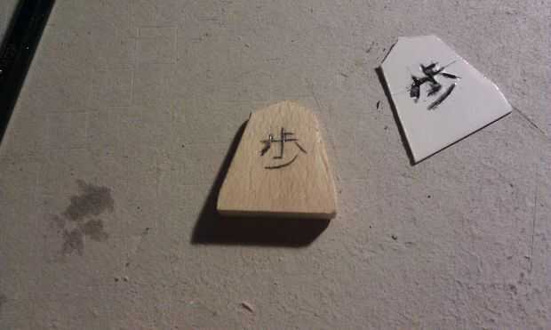 La mayoría de piezas puede ser promovida, como se puede ver en la tabla con signos kanji - los signos promovidos deben ser quemados en la parte posterior de la pieza, por lo que simplemente se puede activar durante el juego para mostrar que usted decidió promover esta.