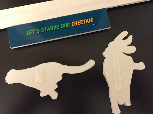 Imprimir la imagen de muestra "Vamos a morir de hambre nuestro chita!". Pegarla a un pedazo de tablero de la espuma y recórtalo.